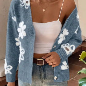 Die Dustine Strickjacke mit charmantem Blumenmuster und elegantem V-Ausschnitt verleiht Ihrem Outfit Raffinesse. Lange Ärmel, klassische Knopfleiste – stilvoll und praktisch für jede Jahreszeit. Ein Hauch von Feminität und Komfort.