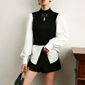 Stricktop mit Bluselementen und dekorativem Ausschnitt (2-in-1)