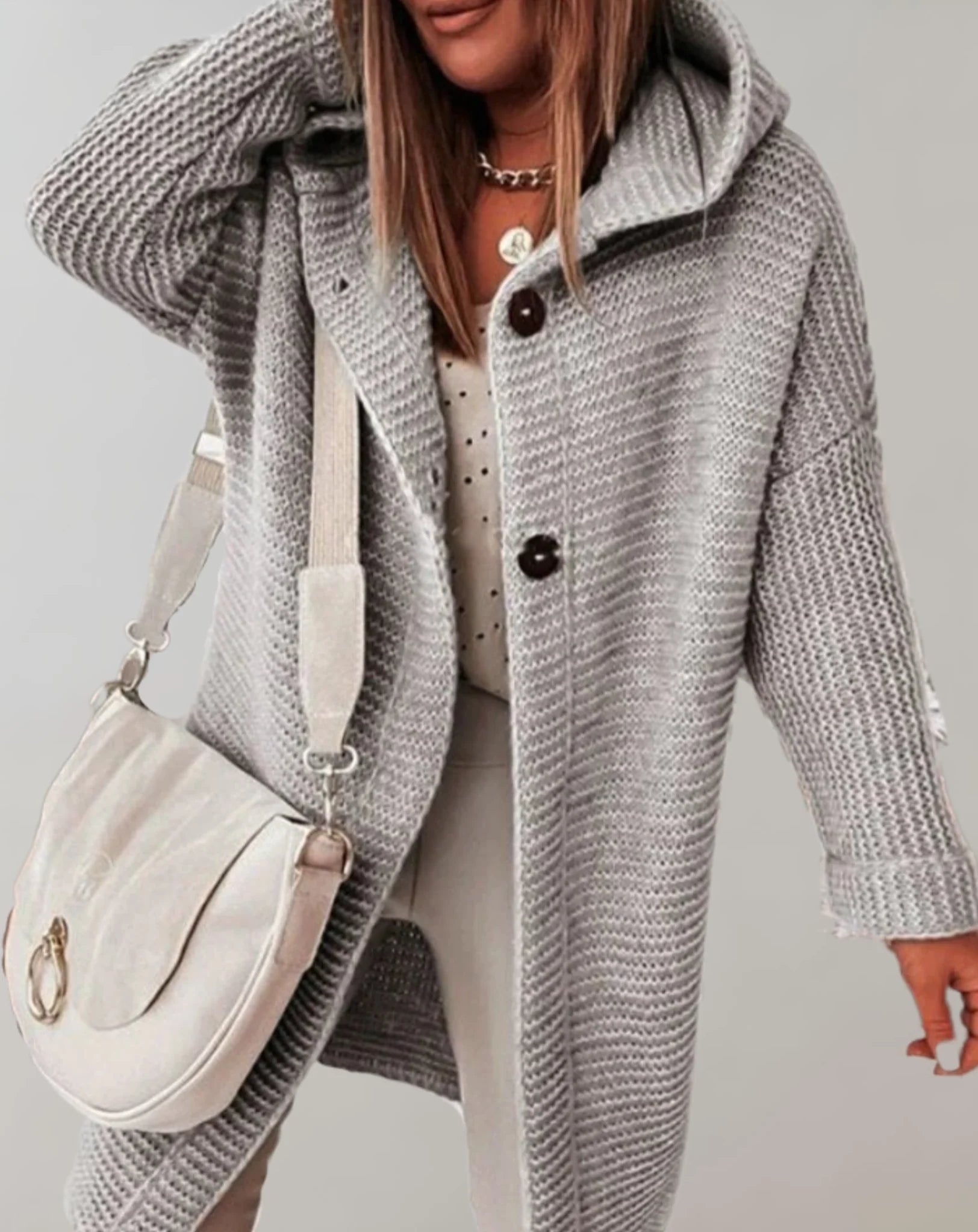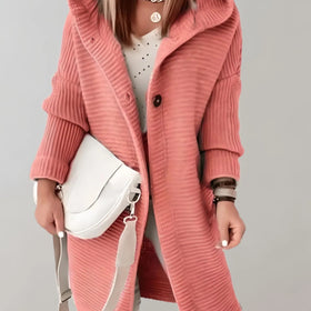 Trendige, lange gerippte Kapuzenjacke für Damen von Fudus