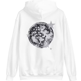 Trendiger, einzigartiger Damen-Kapuzenpullover von Fudus mit Discokugel-Print in Weiß