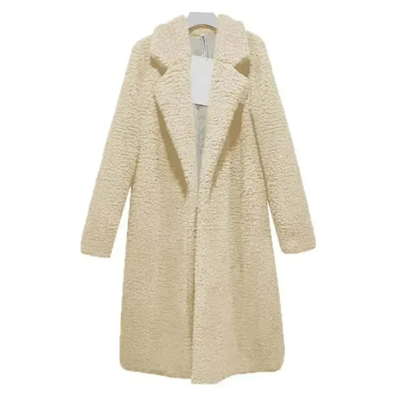 Der Valeria-Teddy-Mantel vereint Wärme und Stil. Dieser lange Mantel aus Plüschfleece bietet hervorragende Isolierung und einen eleganten Look. Seine schlanke Silhouette ist ein echter Hingucker. Perfekt für kalte Tage. Die Größe entspricht der EU-Normgröße.