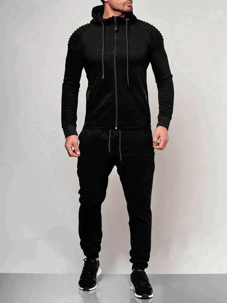- Funktioneller Stil: Reißverschlusstaschen an der Kapuze, durchgehender Reißverschluss mit Kordelzug, elastischer Bund und praktische Seitentaschen an der Jogginghose.
