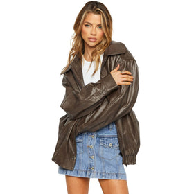 Trendiger Komfort: Chice Oversized-Lederjacke mit elastischem Saum