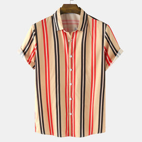 Dieses gestreifte Herren-Kurzarmhemd im Vintage-Druck vereint Eleganz und Lässigkeit. Perfekt für den stilbewussten Mann, der Raffinesse und Komfort schätzt. Ideal für Büro und Freizeit.