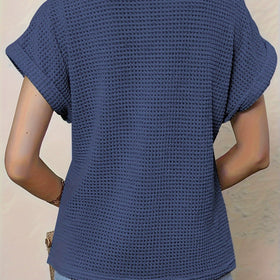Dieses Damen-Oberteil kombiniert lässigen Charme mit femininer Eleganz. Das weiche, strukturierte Waffelstrickgewebe und der zarte Spitzenausschnitt sorgen für einen stilvollen und bequemen Look. Mit leicht umgeschlagenen kurzen Ärmeln ist diese Bluse ideal für den Alltag.
