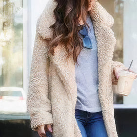 Dieser flauschige lange Damenmantel bietet ultimativen Komfort und Stil an kühlen Herbst- und Wintertagen. Weiches Material und luxuriöse Haptik sorgen für wohlige Wärme. Perfekt für stilbewusste Frauen, die auch an kalten Tagen elegant aussehen möchten. Funktionell und modisch.