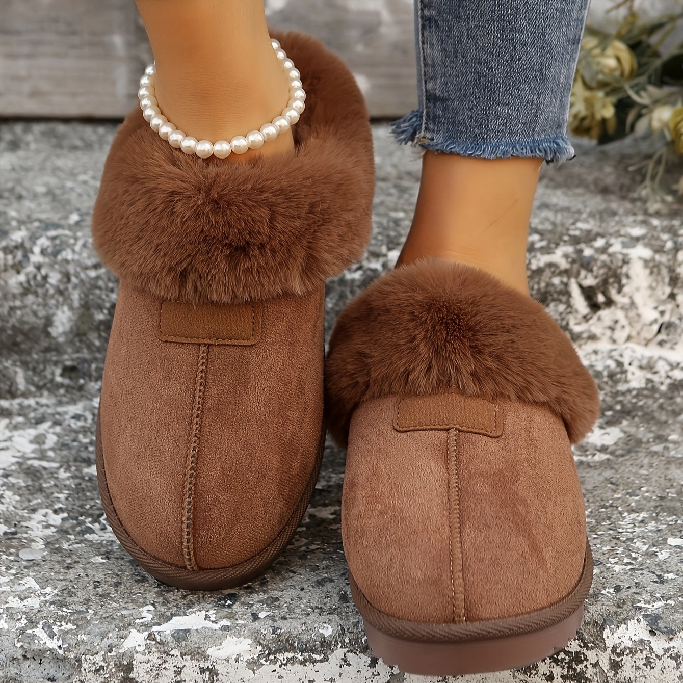 Luxuriöser Komfort für gemütliche und warme Füße. Weiches Kunstfellfutter hält auch an kalten Tagen warm, perfekt für drinnen und kurze Ausflüge.