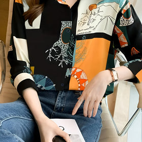 Weinlese-inspirierte Bluse von Fudus mit Druck