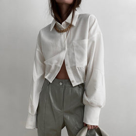 Weißes Damen-Shirt mit langen Ärmeln von Fudus, lockerer Schnitt