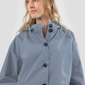 Diese faszinierende Windjacke in Puderblau setzt einen hypnotischen Akzent. Ihr Farbton erinnert an das Meer und verleiht jedem Outfit eine besondere Note.