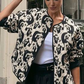 Diese Damenjacke mit hübschem Blumendruck vereint Stil und Wärme für die kalte Jahreszeit.