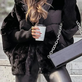– Weicher Materialmix: Flauschiges Kunstfell und hochwertiger Steppstoff sorgen für Wärme und luxuriöse Optik.