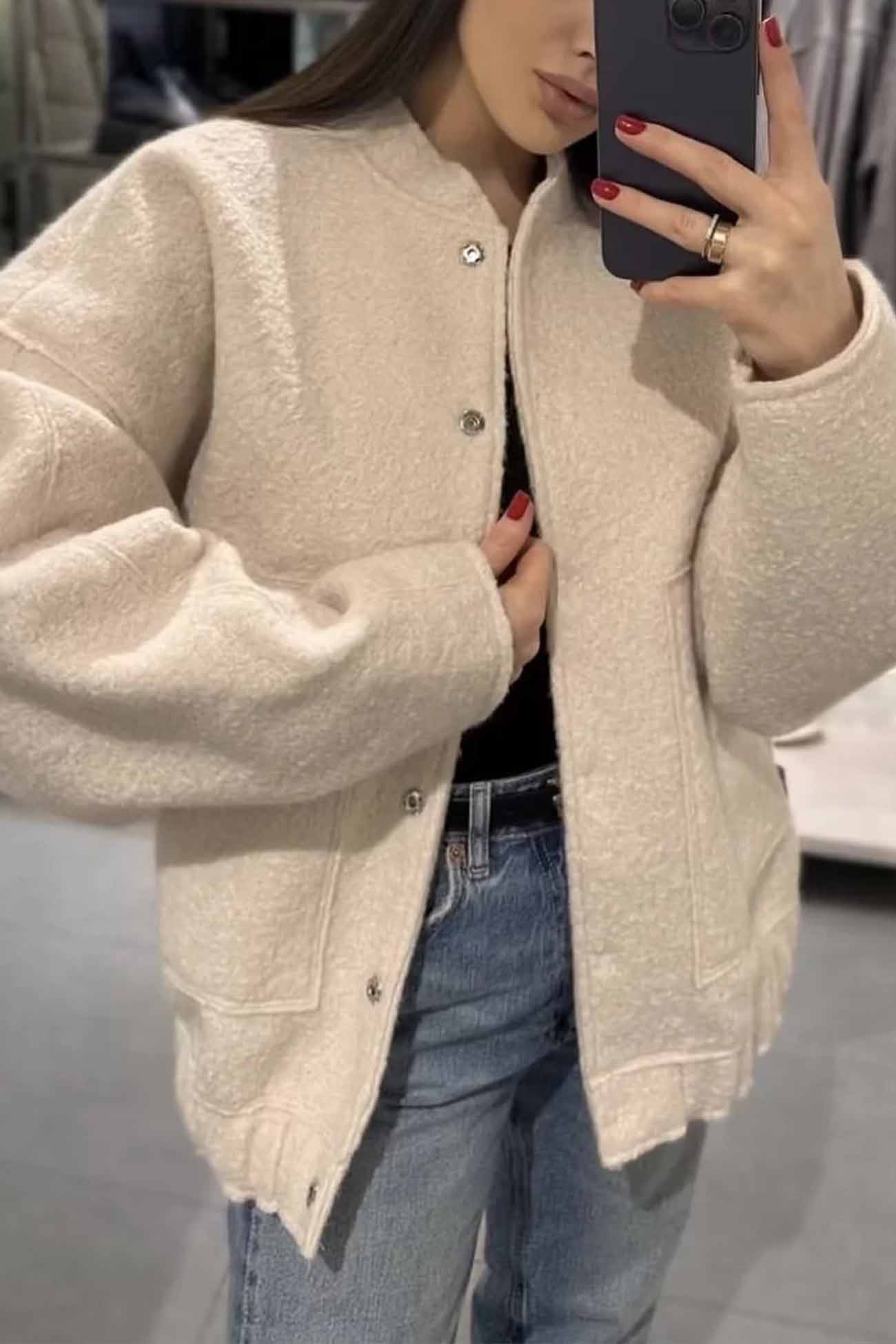 Wivella | Einfarbige Jacke mit Stehkragen und Knöpfen an den Taschen