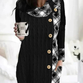 Das Wiyara Karierte Patchwork-Kleid vereint elegantes Design und hohen Tragekomfort. Mit seinem einzigartigen Karomuster und den stilvollen Knöpfen wird dieses Kleid zu einem echten Blickfang. Ideal für verschiedene Anlässe, bietet es sowohl einen klassischen Look als auch moderne Raffinesse.