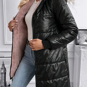 Yulora Damen Wintermantel mit Fleecefutter und langen Ärmeln