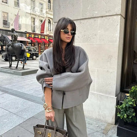 Stilvolle Eleganz – Die Yumea Wolljacke mit V-Ausschnitt