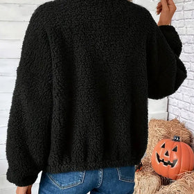 Yuthan Einfarbiger Sherpa-Mantel: Reißverschluss, lange Ärmel, tiefer Ausschnitt