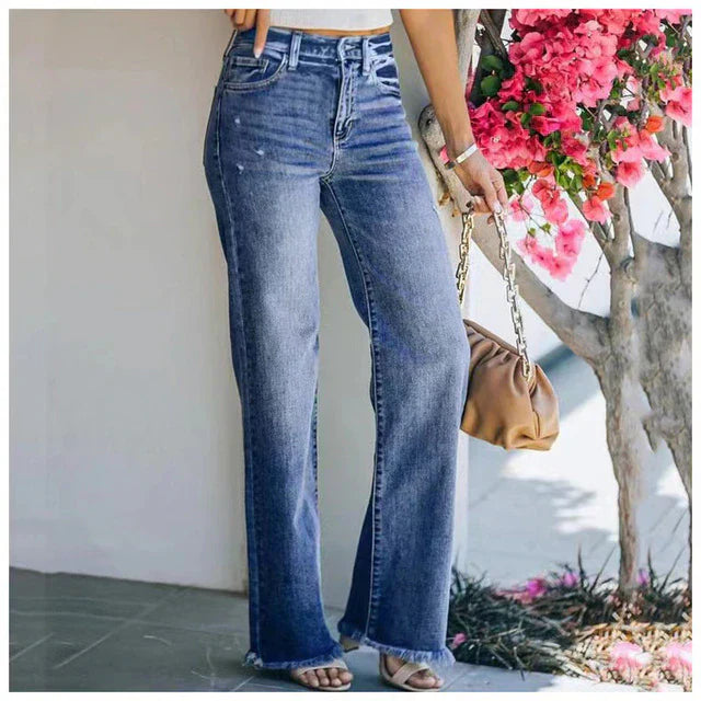 Diese modische, erschwingliche und reisefreundliche ZURI Denim-Jeans bietet bequemen Sitz und maximale Bewegungsfreiheit. Hohe Taille und ausgefranster Saum sorgen für einen modernen, zeitlosen Look.