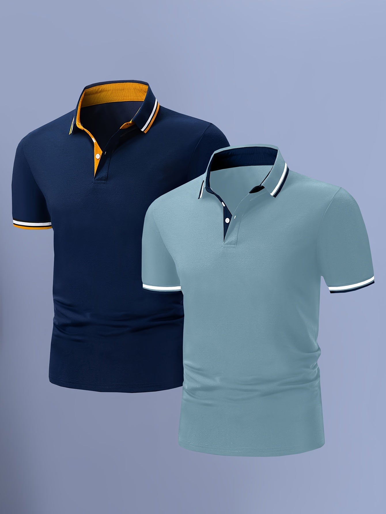 Zwei Kurzarmhemden für Herren mit Kontrastkragen